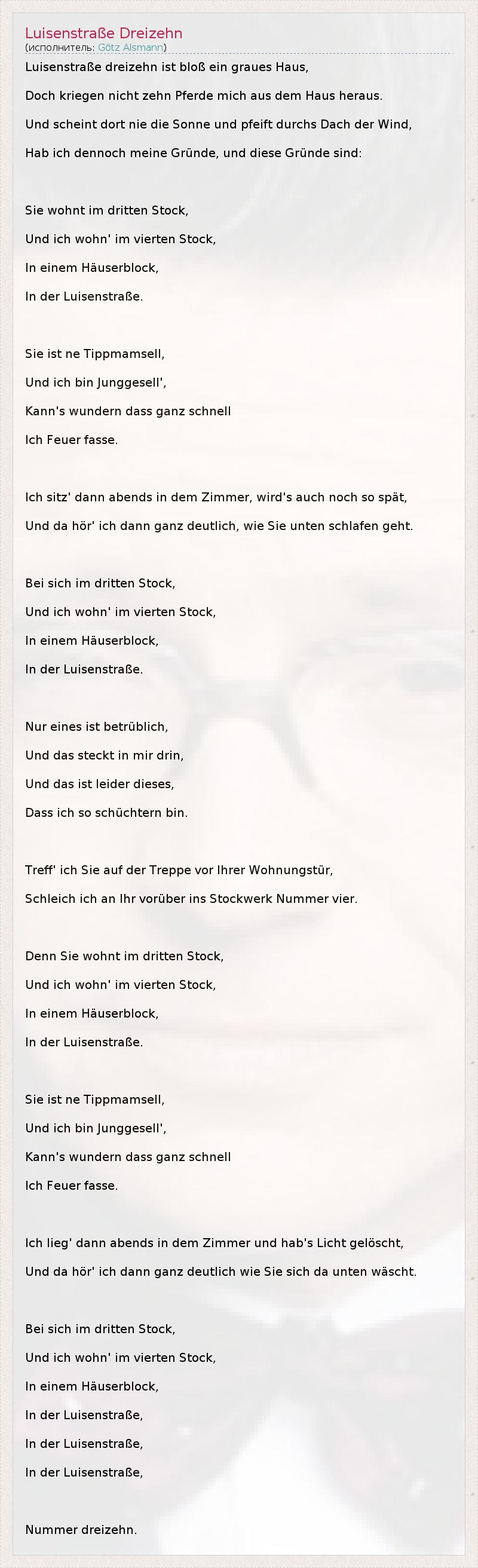А как ты думаешь, о чем песня "Luisenstraße Dreizehn" ?