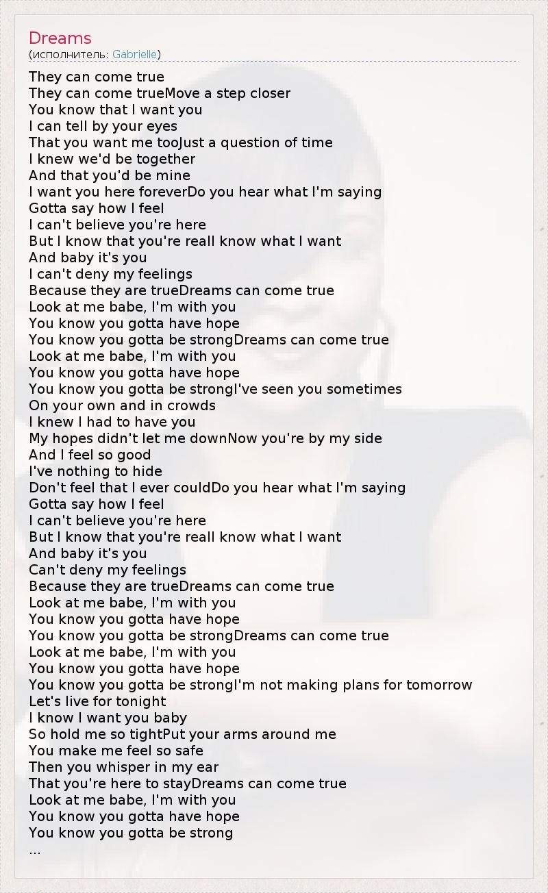 You know you gotta be strongDreams can come true