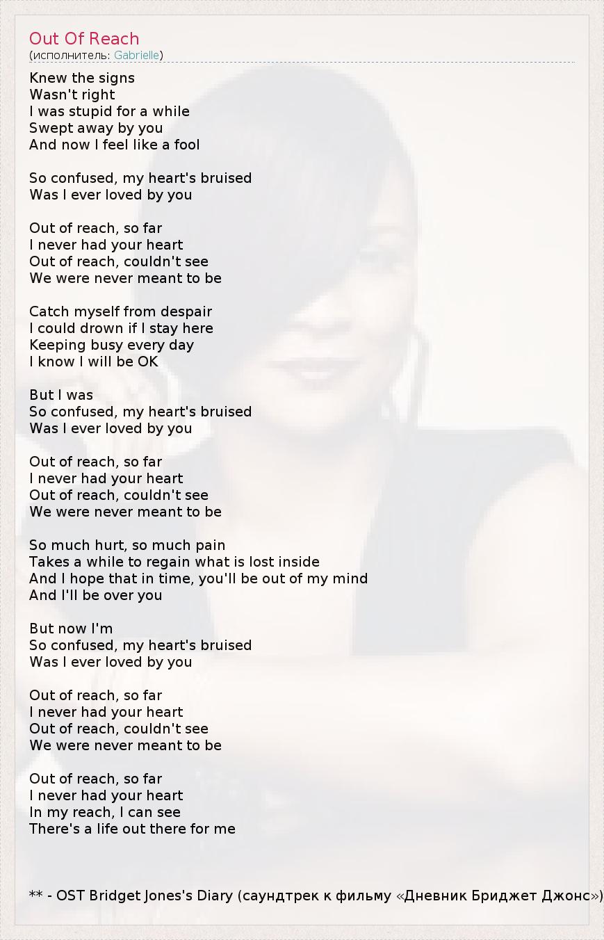 А как ты думаешь, о чем песня "Out Of Reach" ?