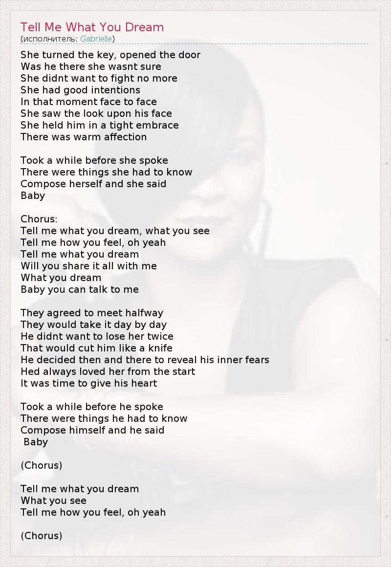 ГлавнаяИсполнителиGabrielleTell Me What You Dream