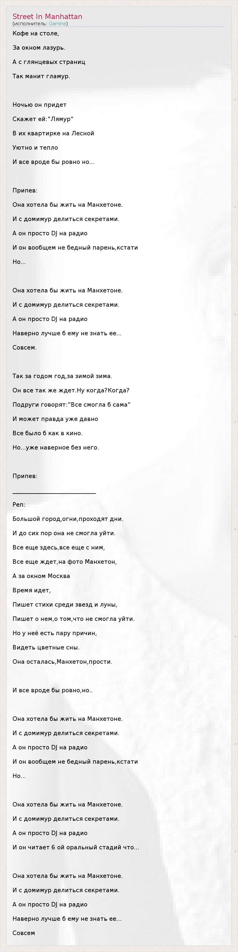 А как ты думаешь, о чем песня "Street In Manhattan" ?