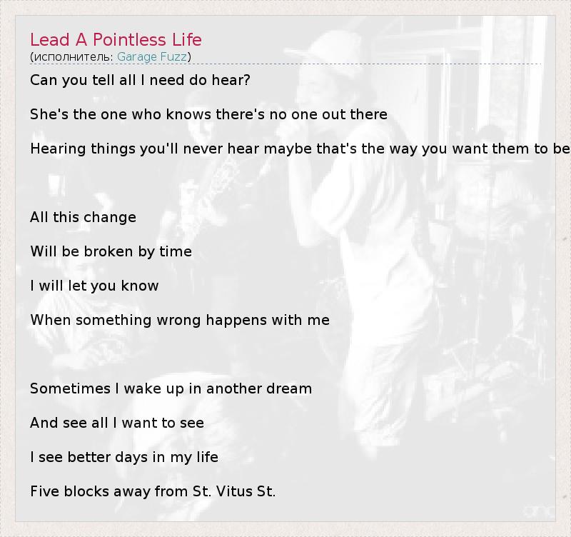 А как ты думаешь, о чем песня "Lead A Pointless Life" ?