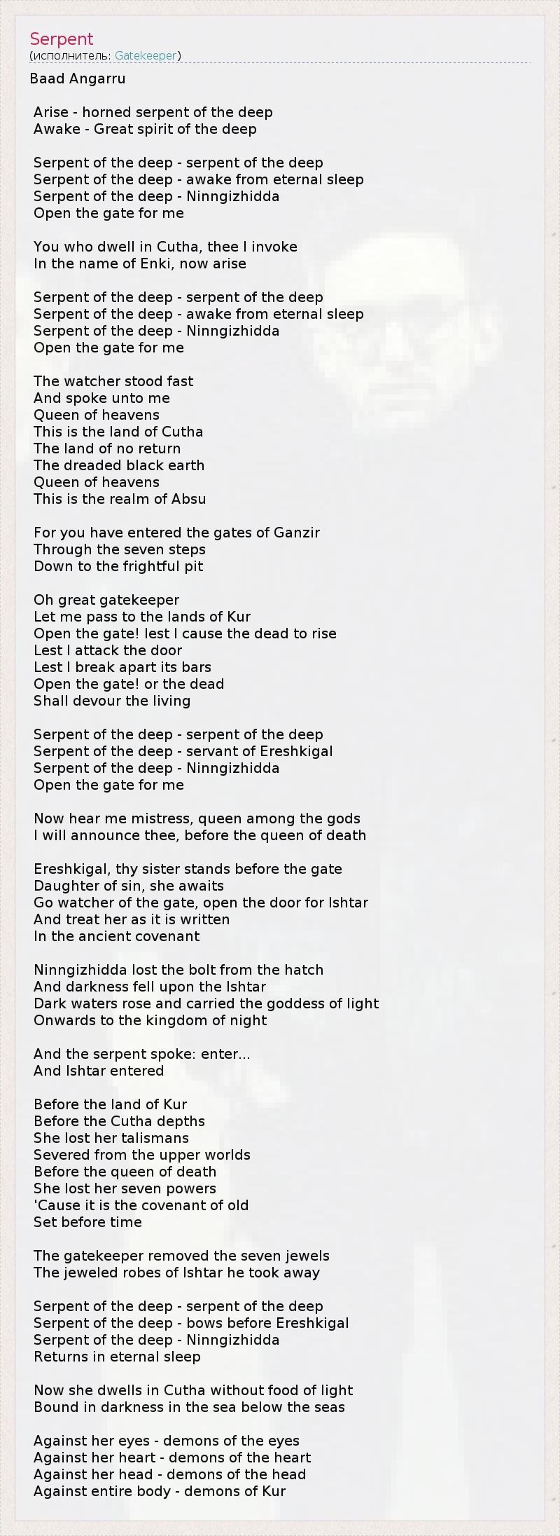 Serpent of the deep - bows before Ereshkigal
