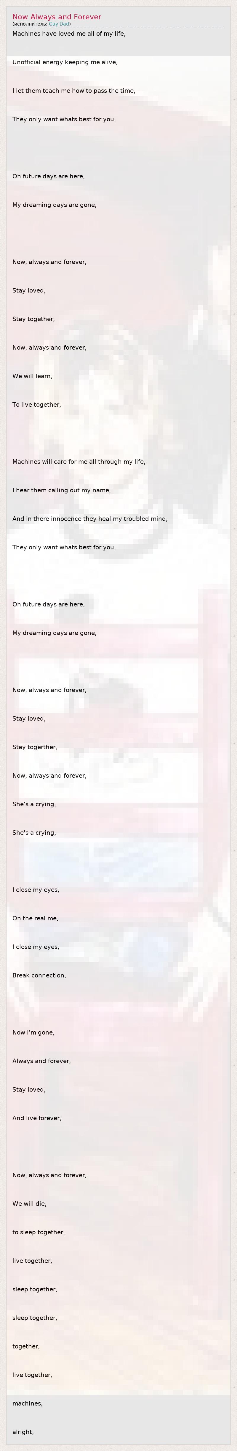 ГлавнаяИсполнителиGay DadNow Always and Forever