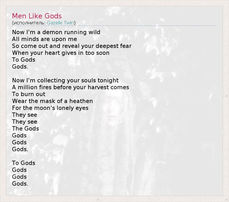 А как ты думаешь, о чем песня "Men Like Gods" ?