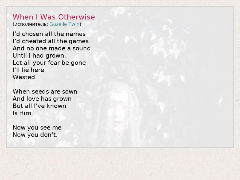 А как ты думаешь, о чем песня "When I Was Otherwise" ?