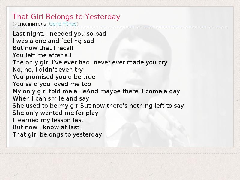 А как ты думаешь, о чем песня "That Girl Belongs to Yesterday" ?