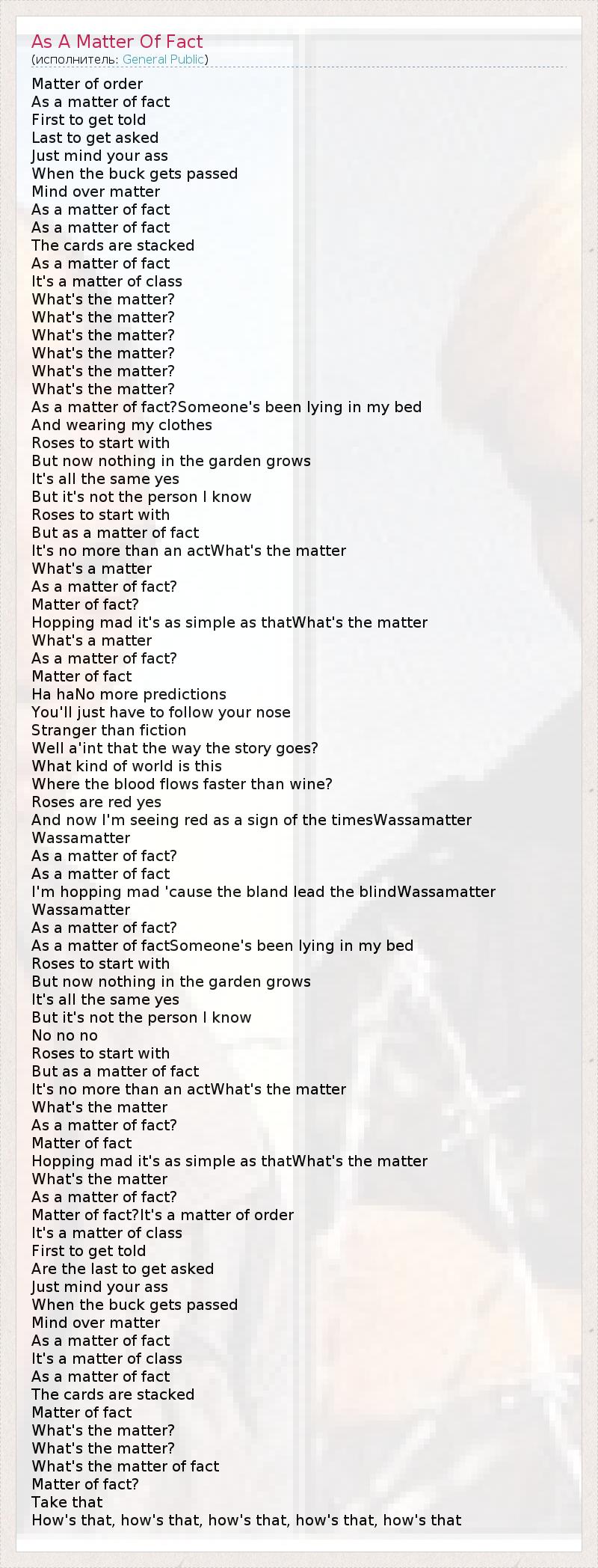 А как ты думаешь, о чем песня "As A Matter Of Fact" ?