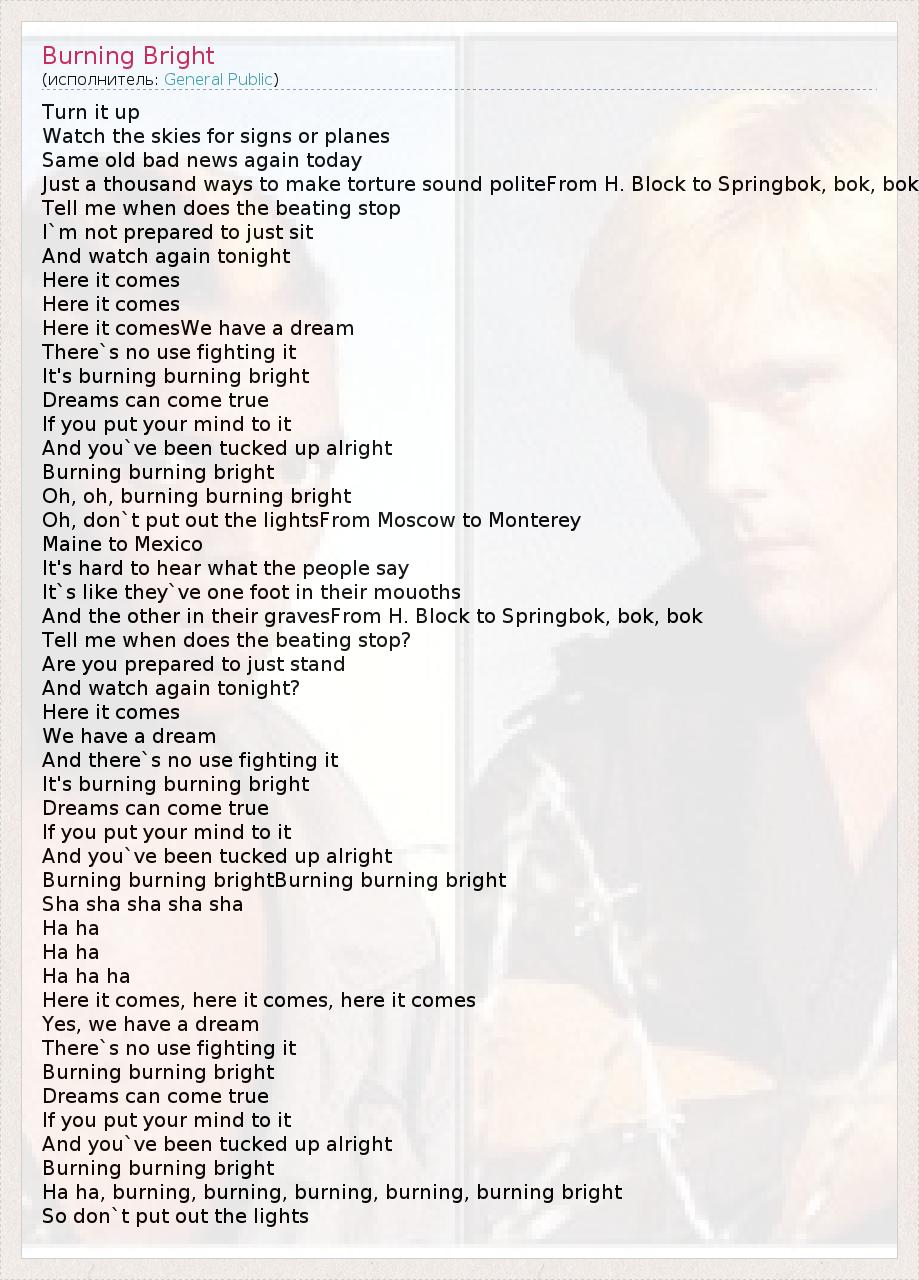 А как ты думаешь, о чем песня "Burning Bright" ?