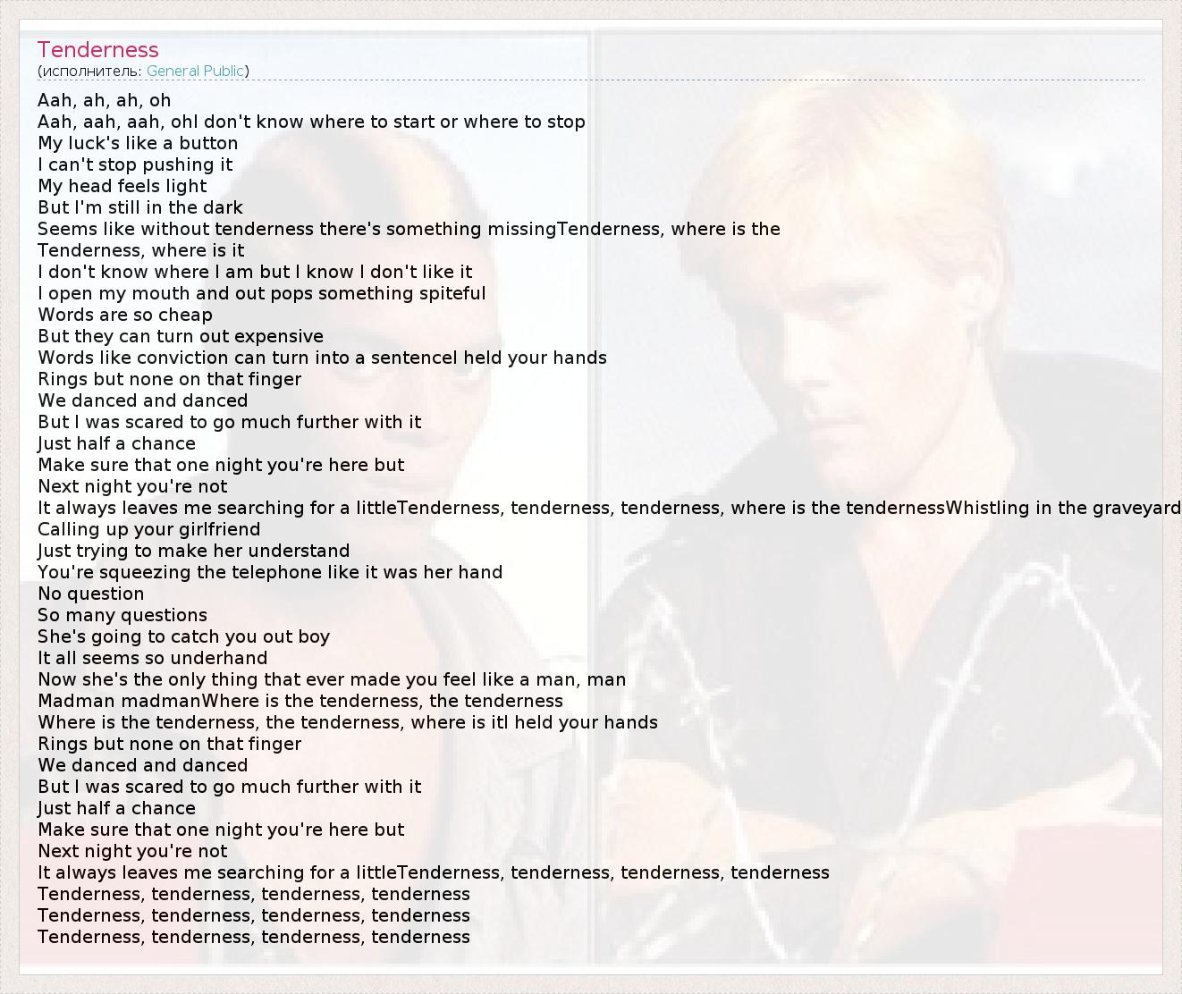 It always leaves me searching for a littleTenderness, tenderness, tenderness, tenderness