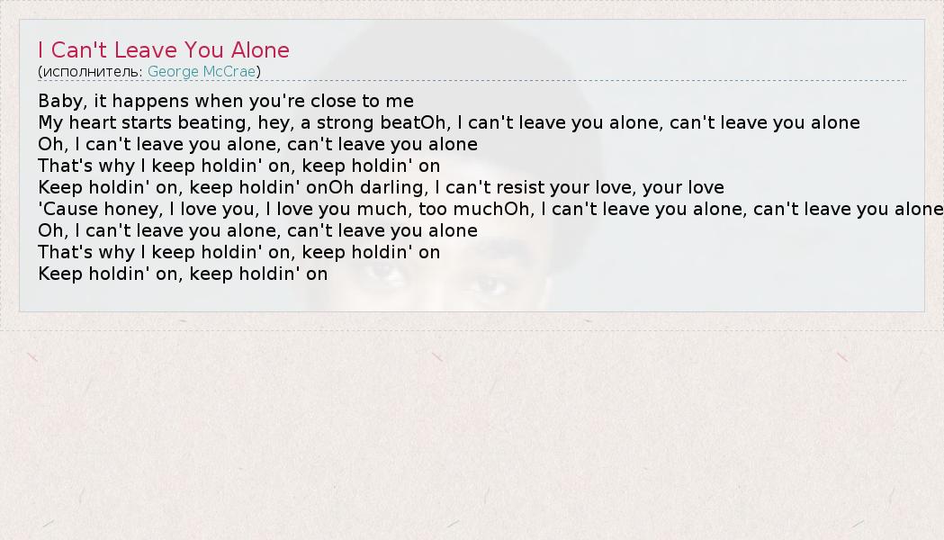 А как ты думаешь, о чем песня "I Can't Leave You Alone" ?