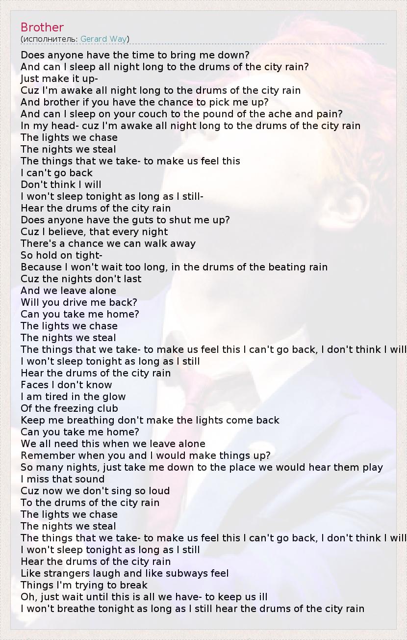 I won't breathe tonight as long as I still hear the drums of the city rain