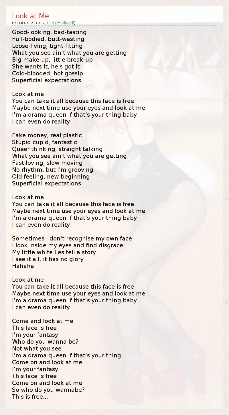Первым синглом стала песня "Look at Me". В видео на эту песню Джери предстает в разных образах, также в клипе присутствует момент похорон Ginger Spice (прозвище Джери в группе) и рождение Джери, как самостоятельной исполнительницы. Видео заканчивается фразой: Geri's Back!