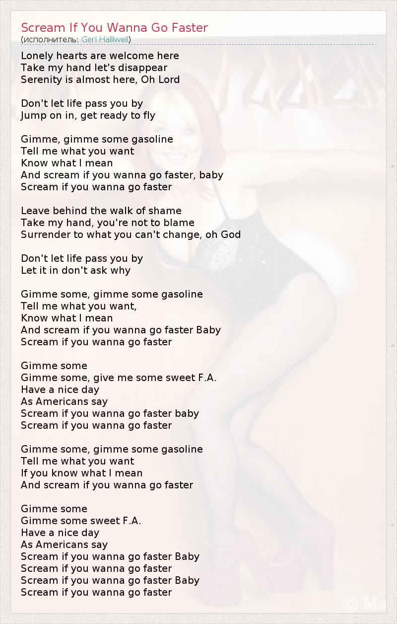 ГлавнаяИсполнителиGeri HalliwellScream If You Wanna Go Faster