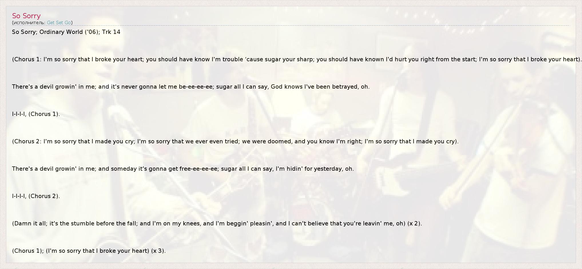 А как ты думаешь, о чем песня "So Sorry" ?