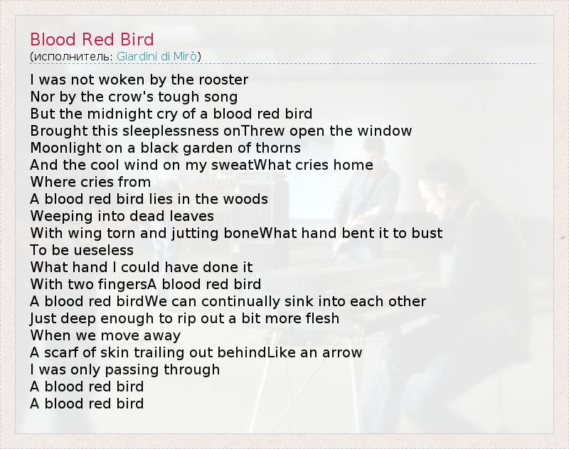 А как ты думаешь, о чем песня "Blood Red Bird" ?