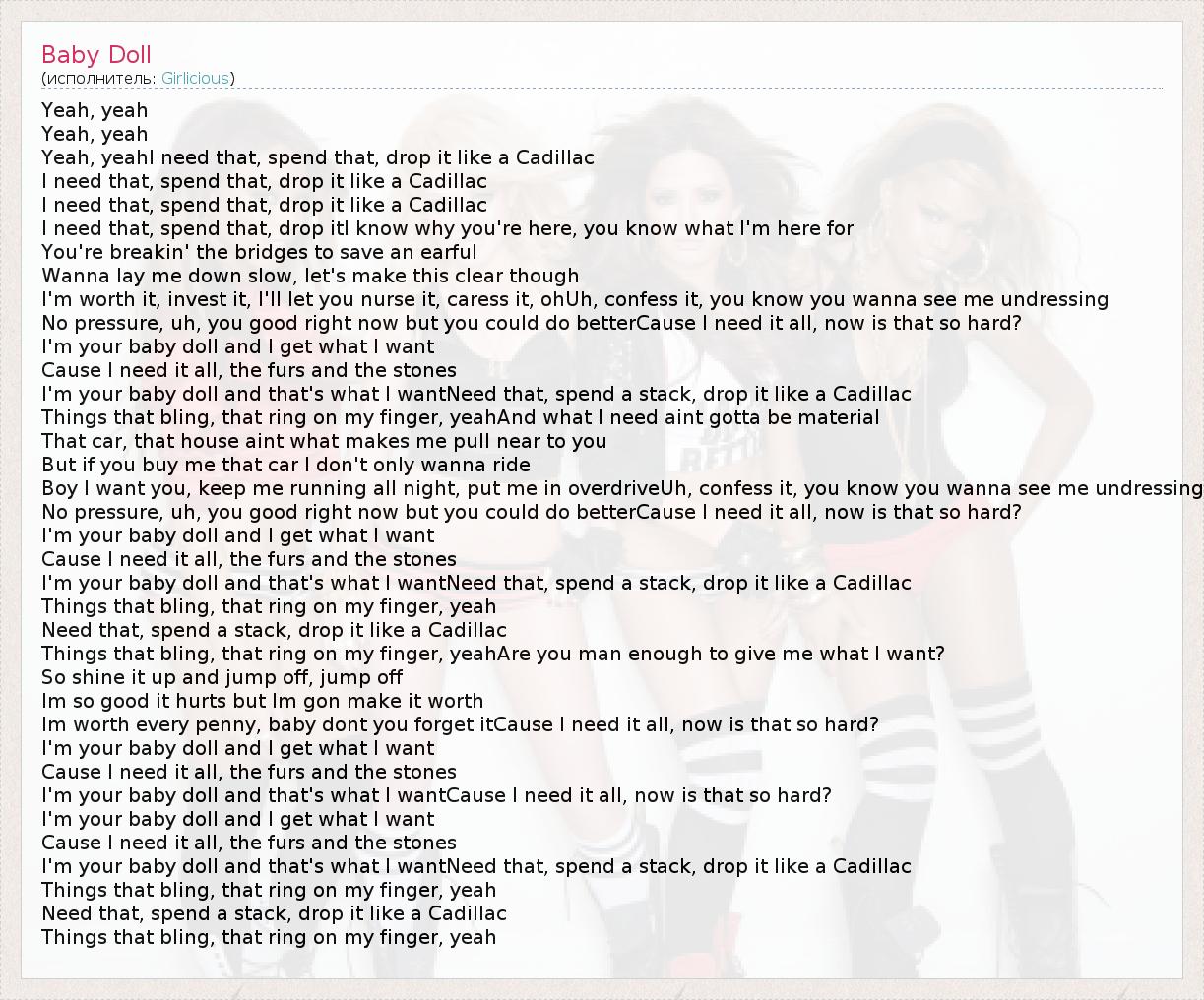 I'm your baby doll and that's what I wantNeed that, spend a stack, drop it like a Cadillac