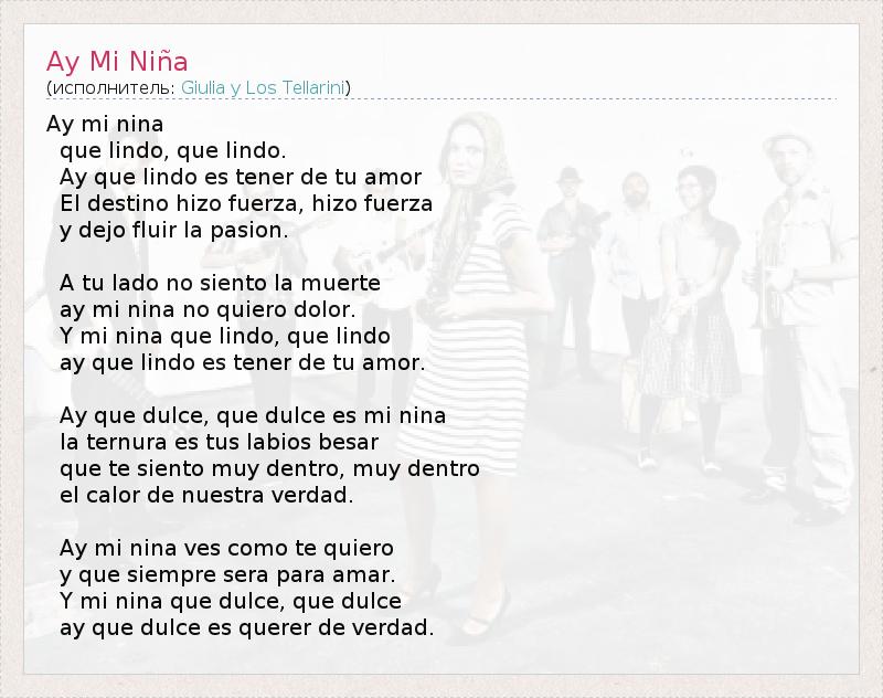 А как ты думаешь, о чем песня "Ay Mi Niña" ?
