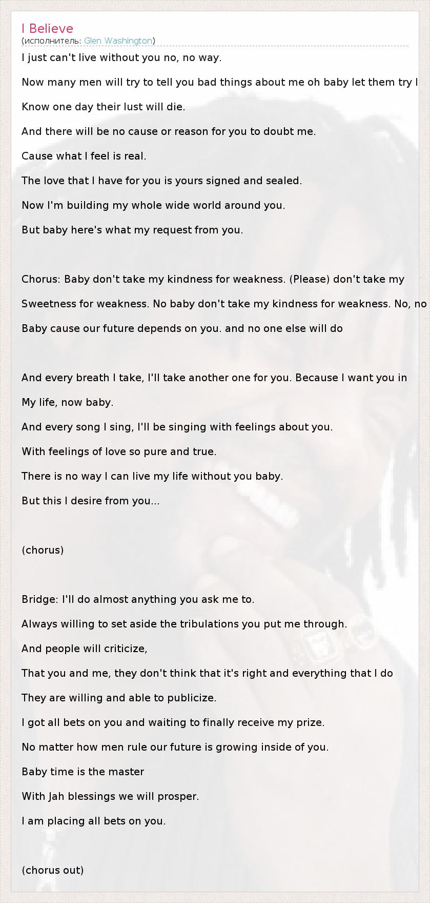 Chorus: Baby don't take my kindness for weakness. (Please) don't take my