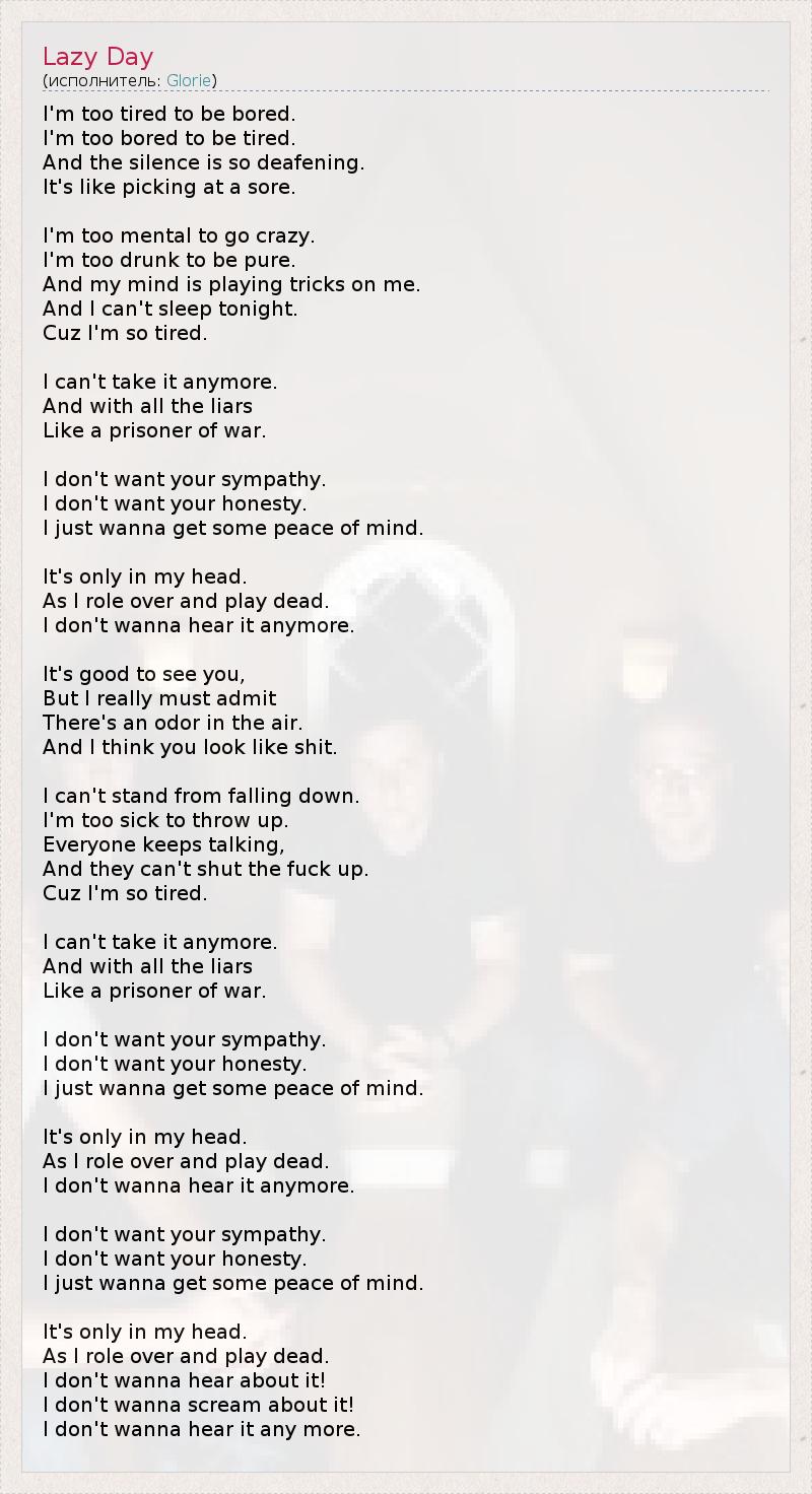 А как ты думаешь, о чем песня "Lazy Day" ?