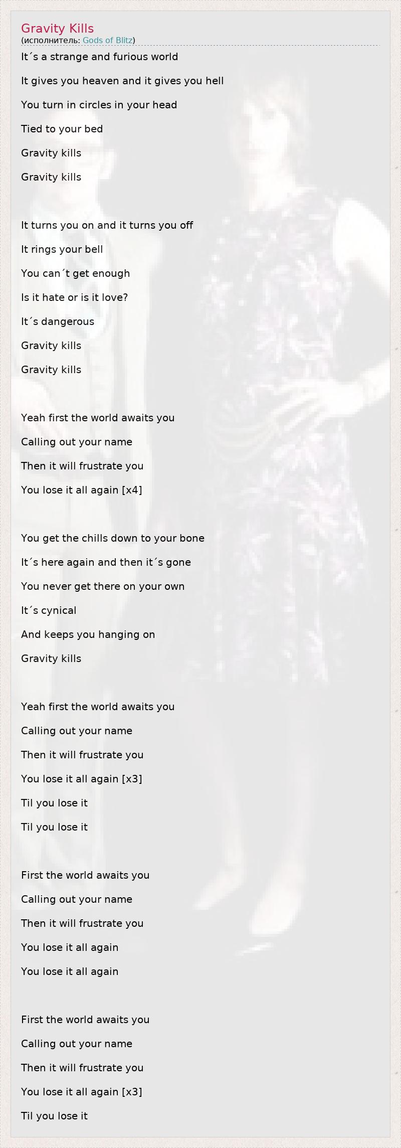 А как ты думаешь, о чем песня "Gravity Kills" ?