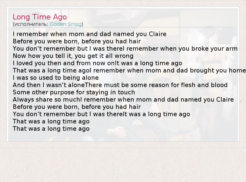 А как ты думаешь, о чем песня "Long Time Ago" ?