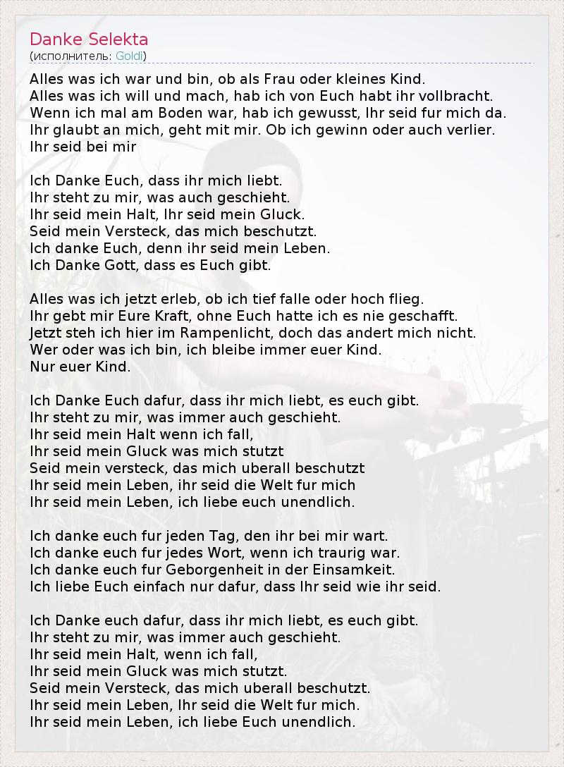 Ich danke euch fur jedes Wort, wenn ich traurig war.