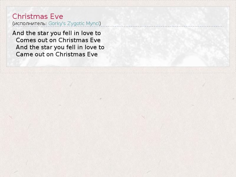 А как ты думаешь, о чем песня "Christmas Eve" ?