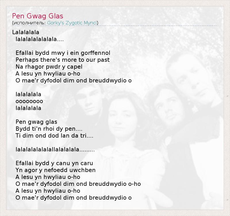 А как ты думаешь, о чем песня "Pen Gwag Glas" ?