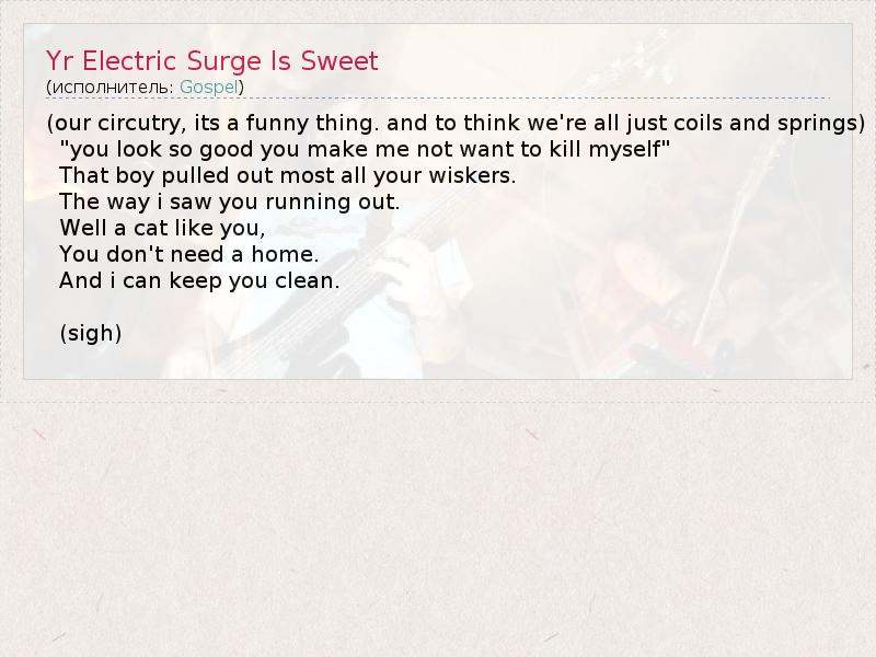 А как ты думаешь, о чем песня "Yr Electric Surge Is Sweet" ?