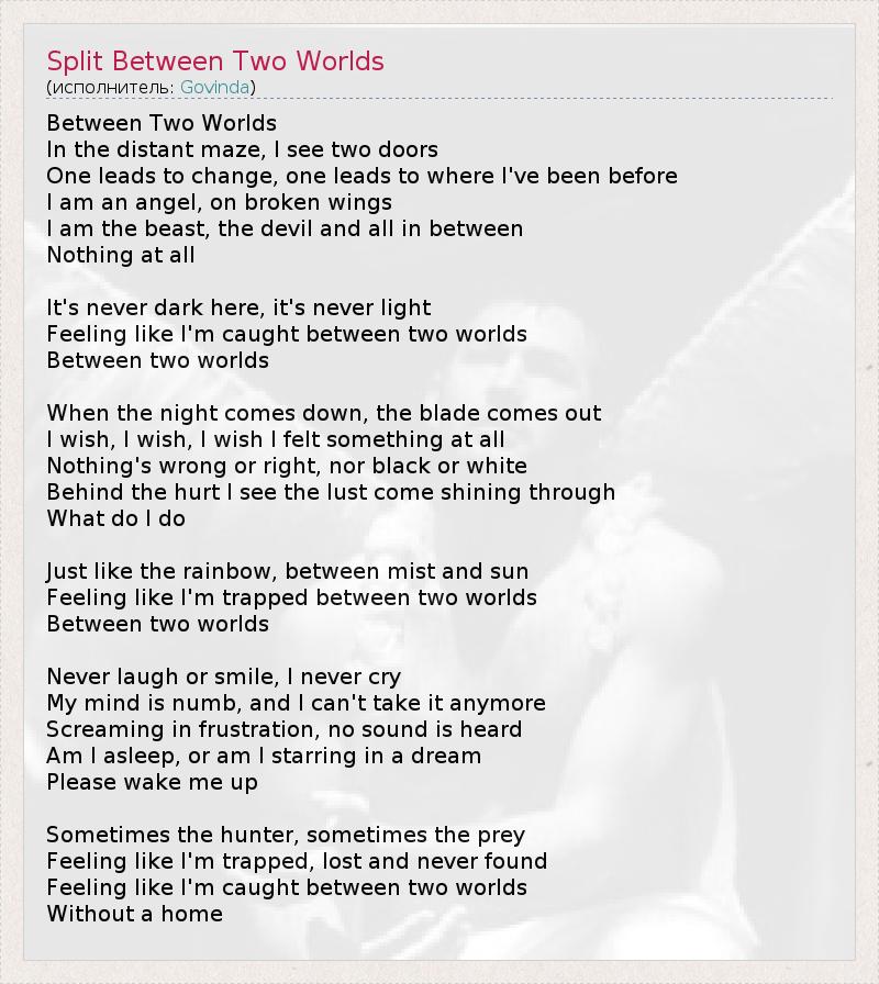 А как ты думаешь, о чем песня "Split Between Two Worlds" ?