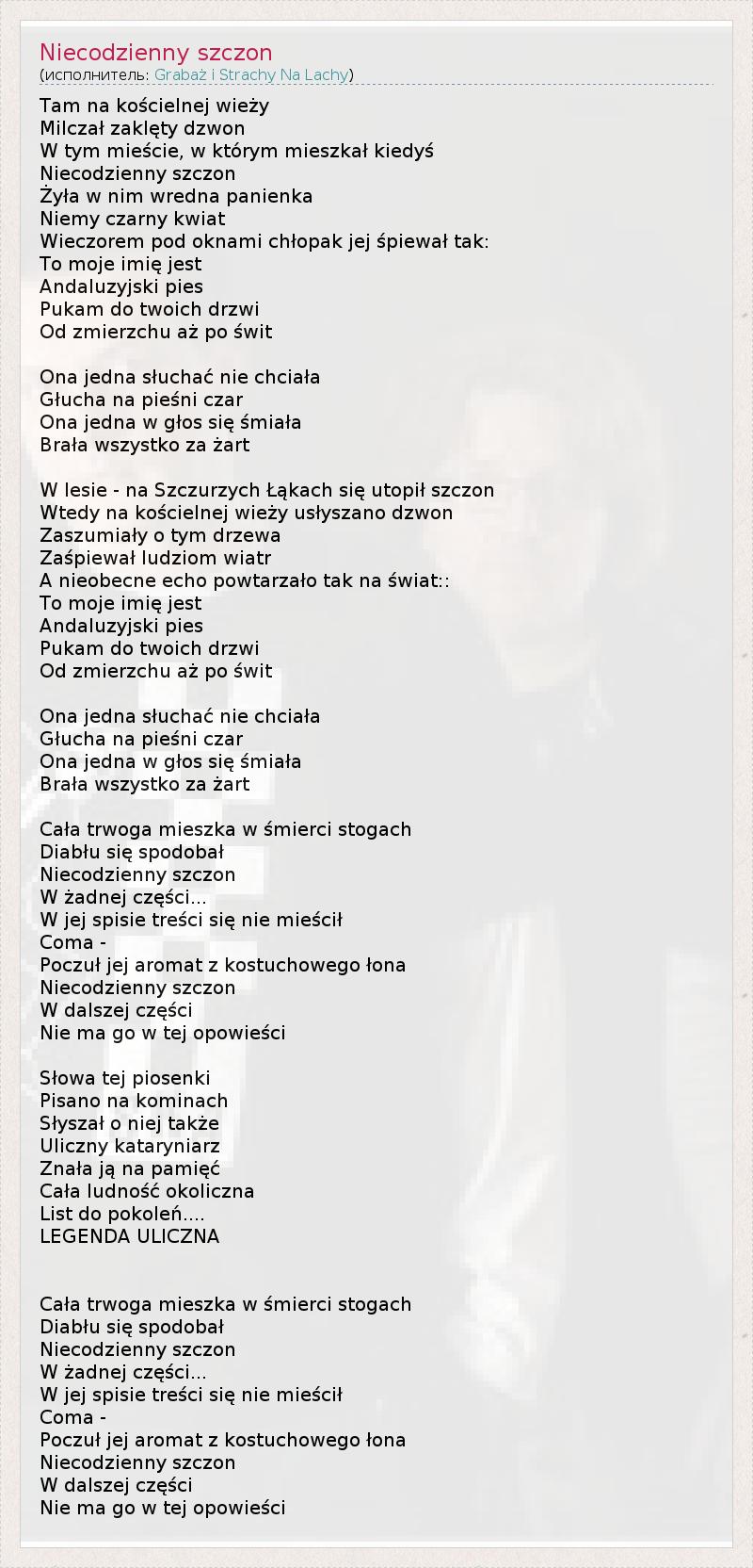 А как ты думаешь, о чем песня "Niecodzienny szczon" ?