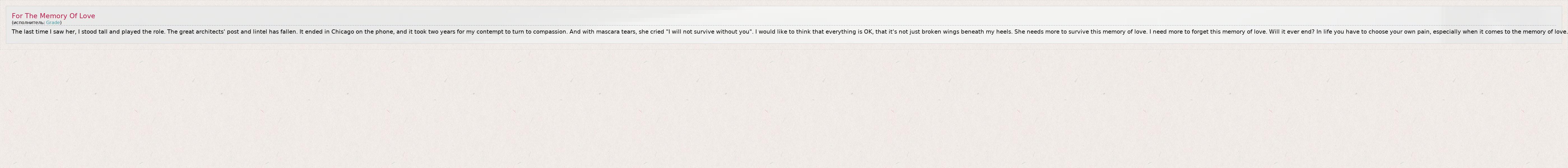 ГлавнаяИсполнителиGradeFor The Memory Of Love