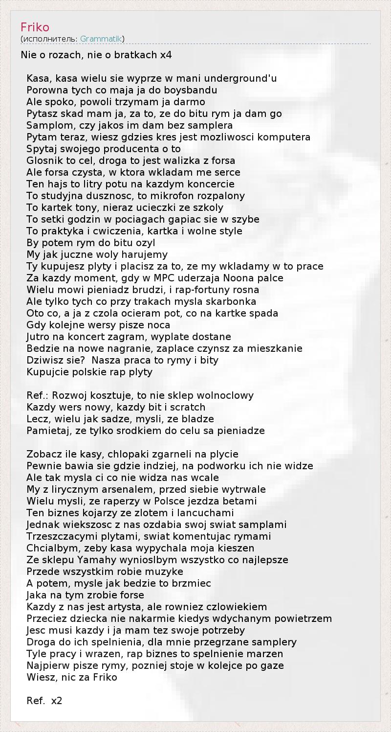 Najpierw pisze rymy, pozniej stoje w kolejce po gaze