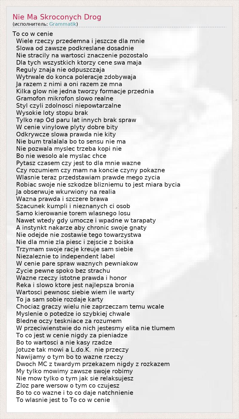 А как ты думаешь, о чем песня "Nie Ma Skroconych Drog" ?