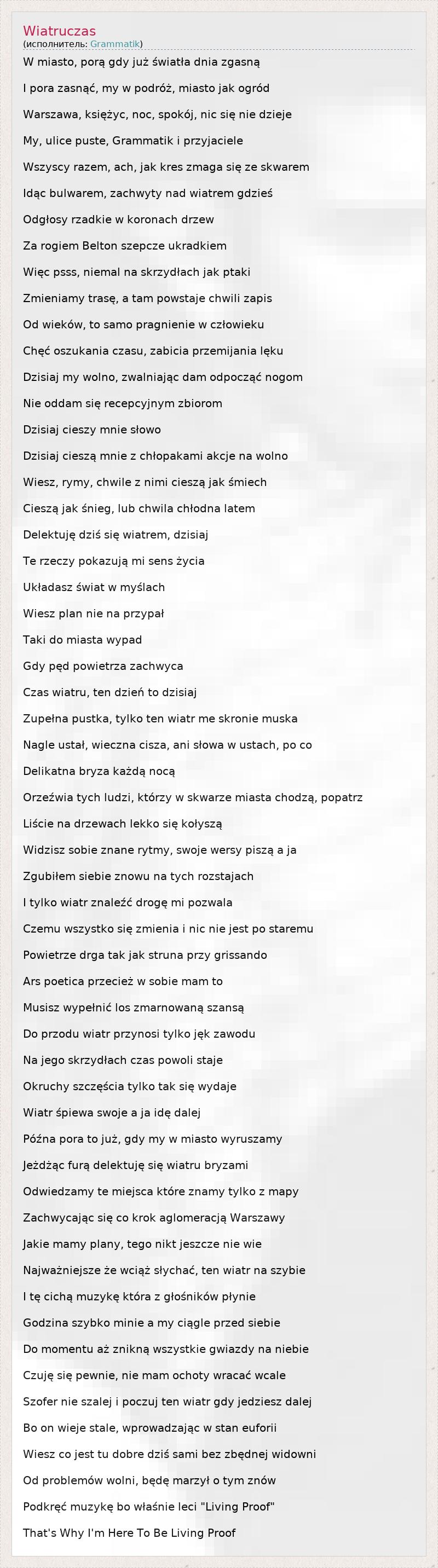 А как ты думаешь, о чем песня "Wiatruczas" ?