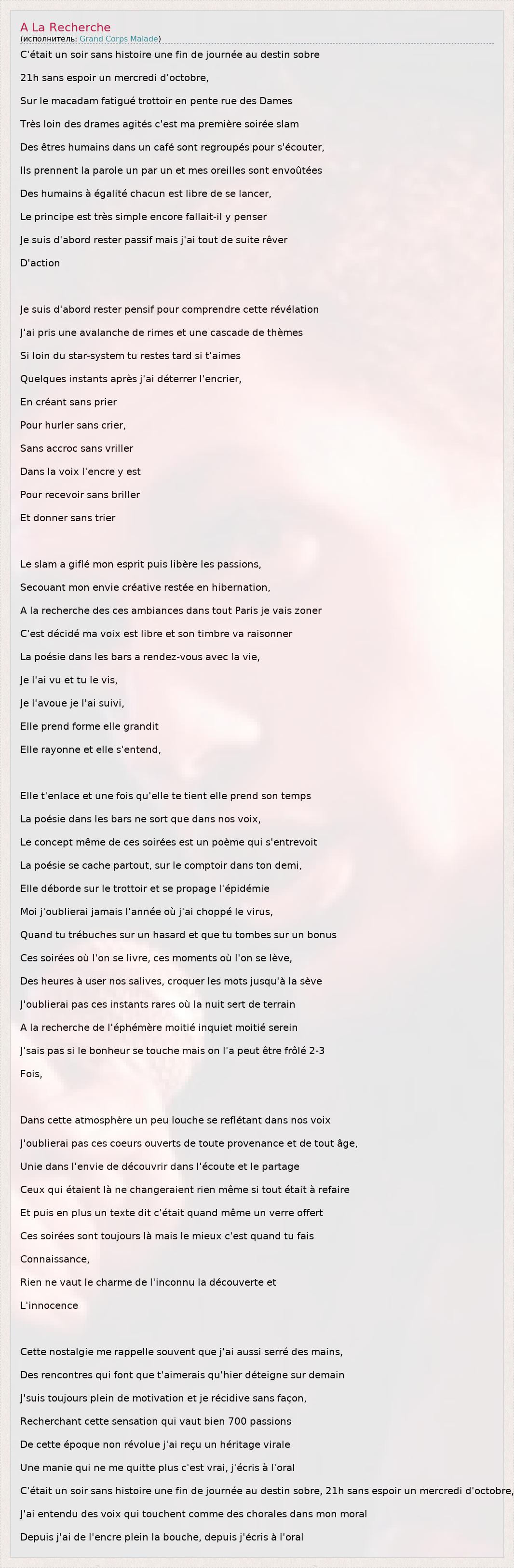 А как ты думаешь, о чем песня "A La Recherche" ?