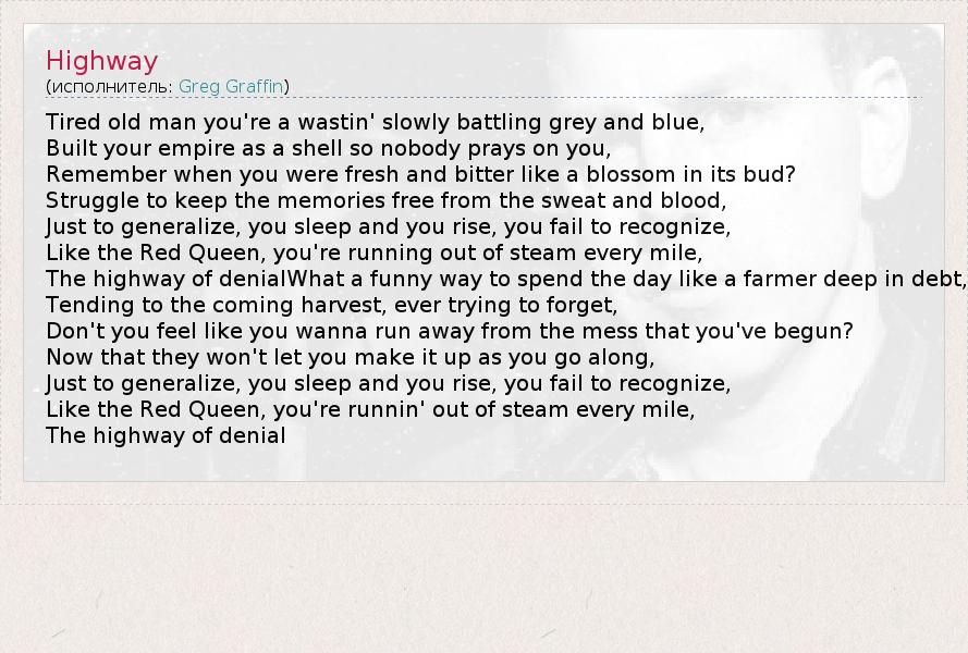 А как ты думаешь, о чем песня "Highway" ?