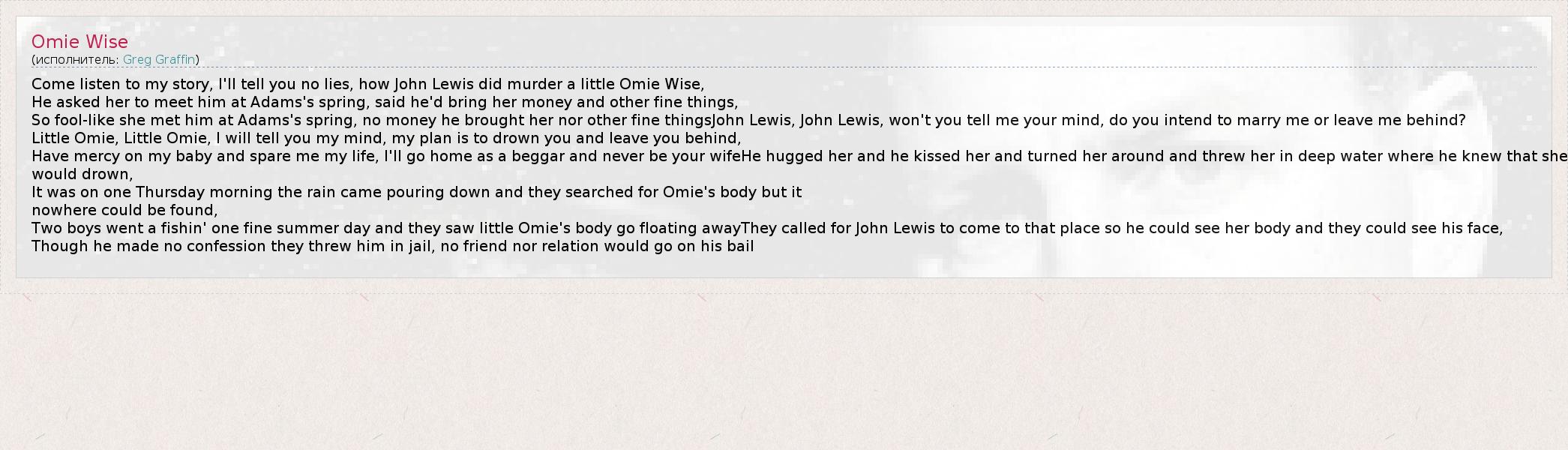 Come listen to my story, I'll tell you no lies, how John Lewis did murder a little Omie Wise,