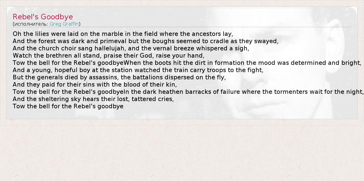 А как ты думаешь, о чем песня "Rebel's Goodbye" ?
