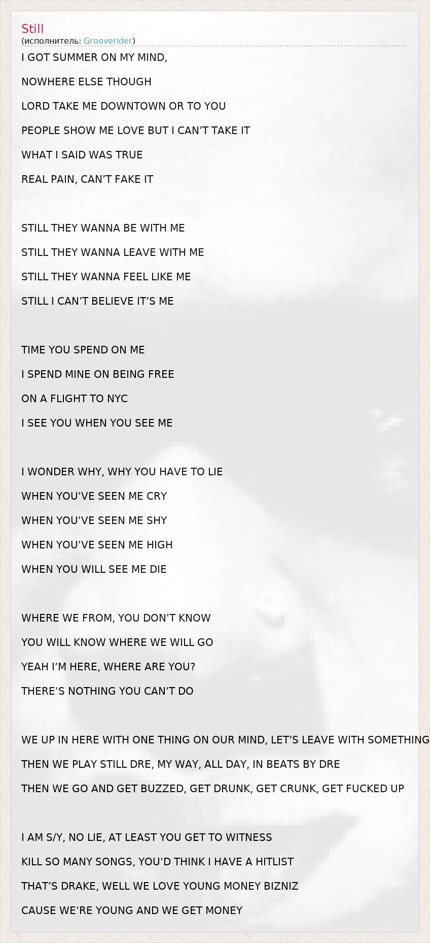 А как ты думаешь, о чем песня "Still" ?
