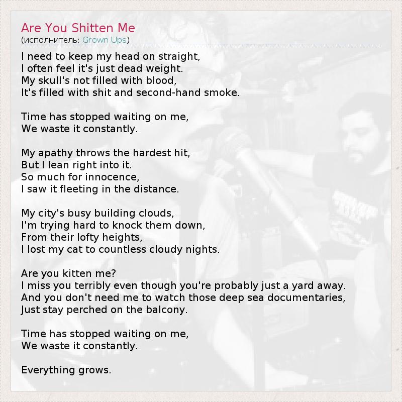 А как ты думаешь, о чем песня "Are You Shitten Me" ?