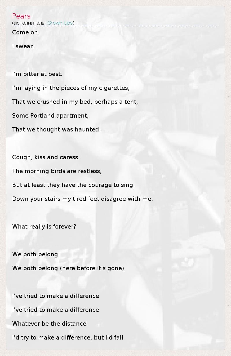А как ты думаешь, о чем песня "Pears" ?