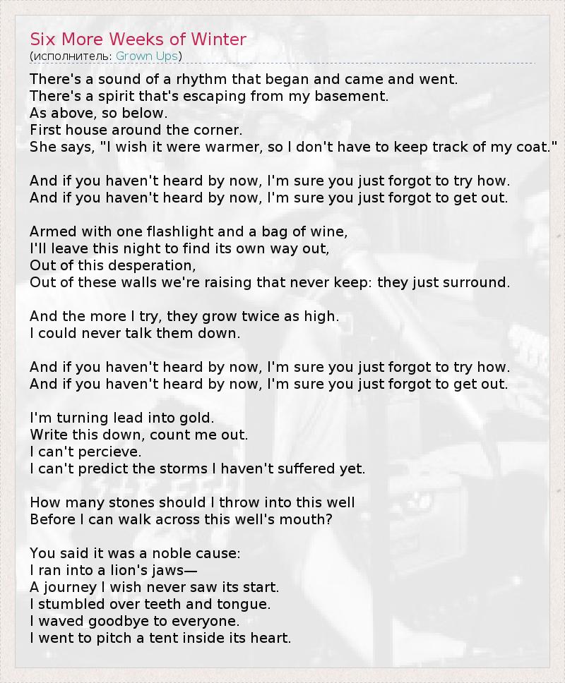 А как ты думаешь, о чем песня "Six More Weeks of Winter" ?