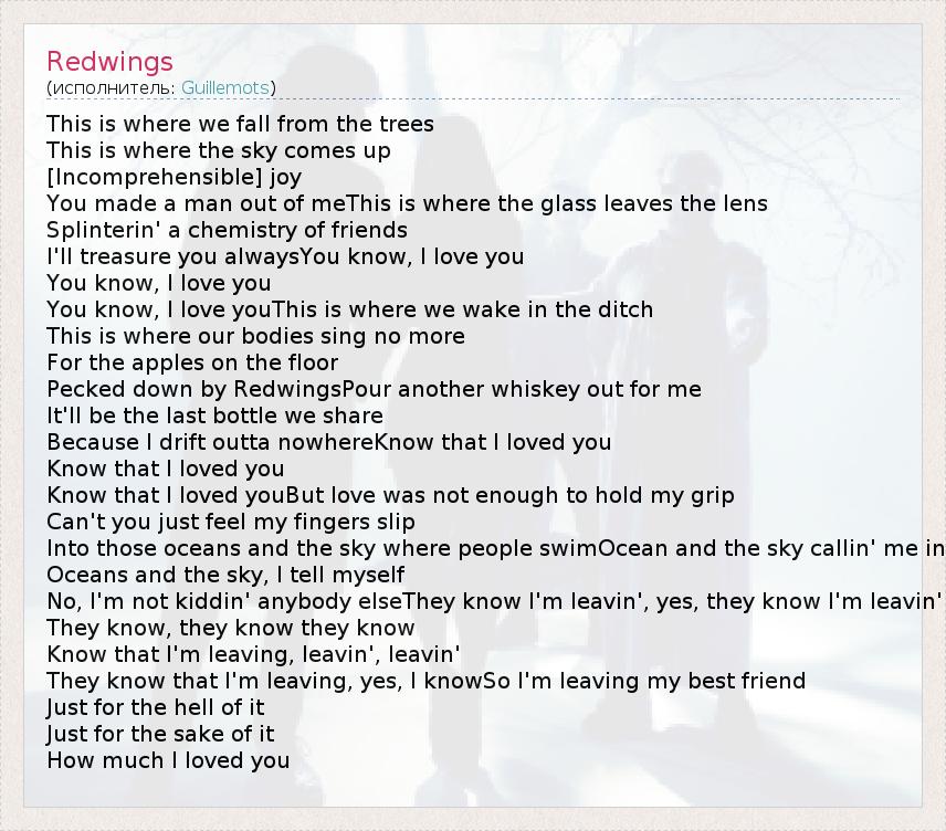 А как ты думаешь, о чем песня "Redwings" ?
