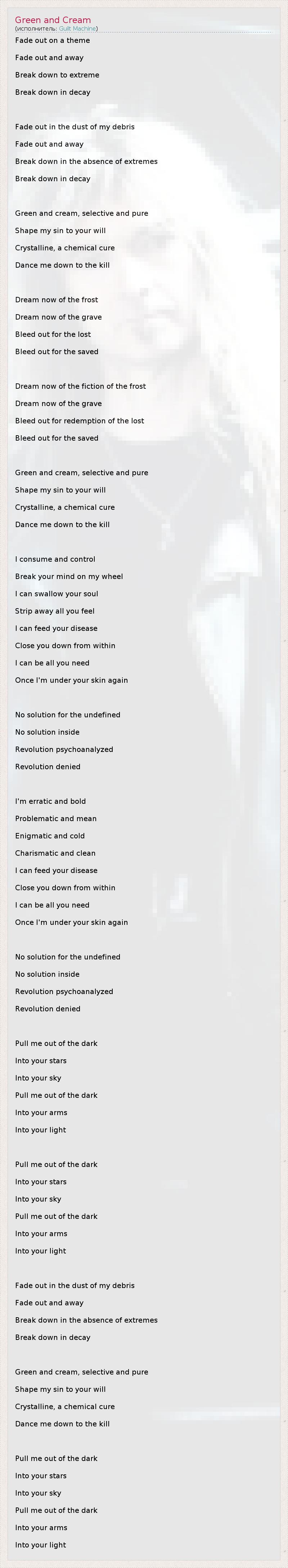 А как ты думаешь, о чем песня "Green and Cream" ?
