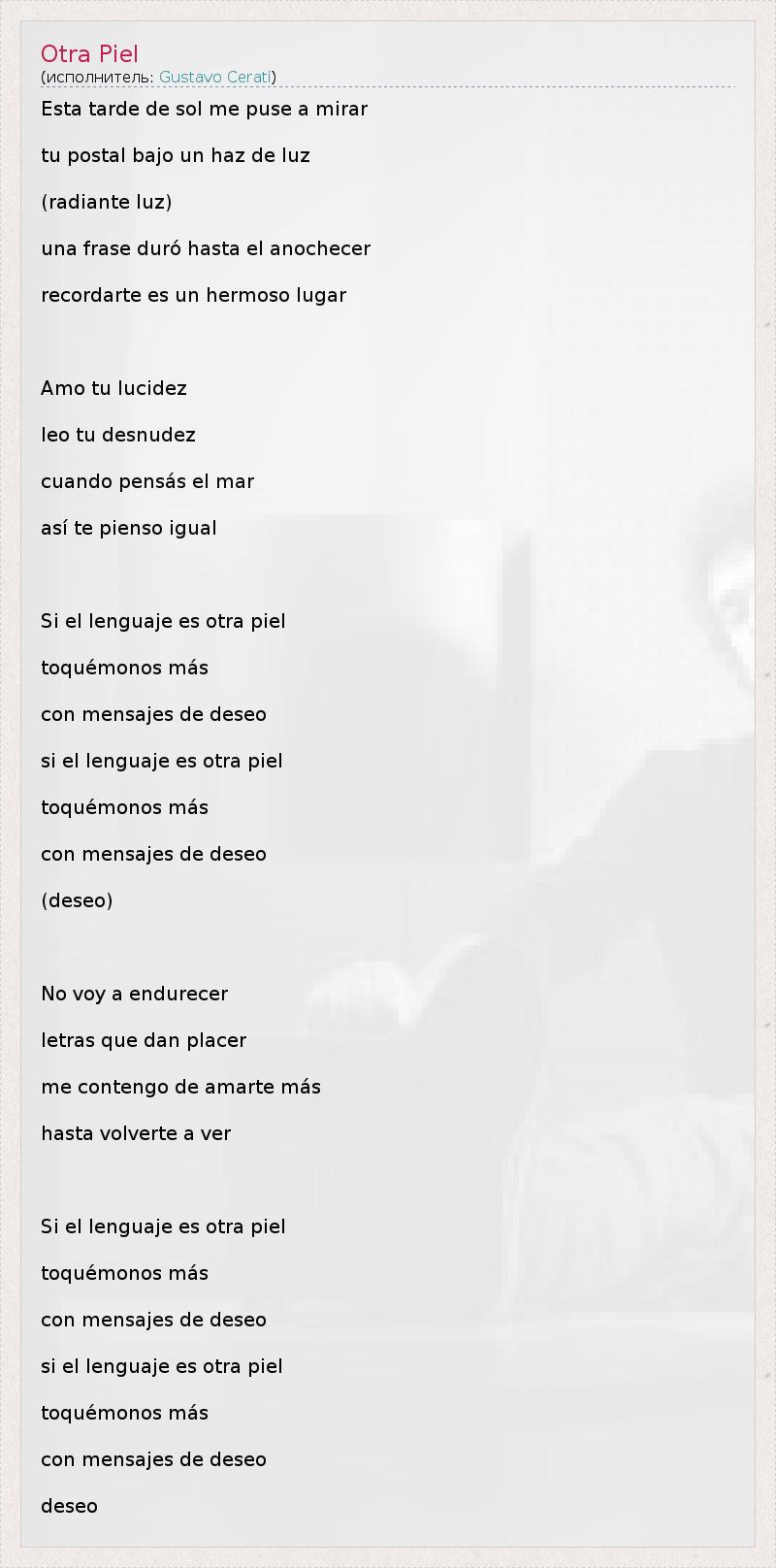 А как ты думаешь, о чем песня "Otra Piel" ?