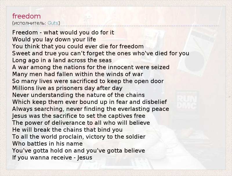 А как ты думаешь, о чем песня "freedom" ?