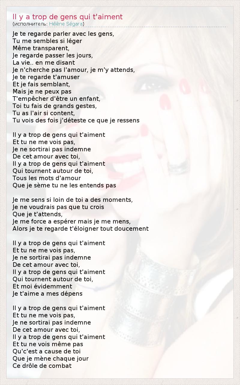 А как ты думаешь, о чем песня "Il y a trop de gens qui t'aiment" ?