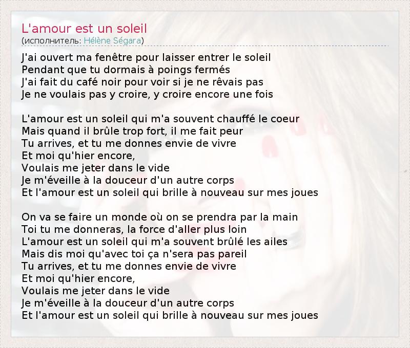 А как ты думаешь, о чем песня "L'amour est un soleil" ?